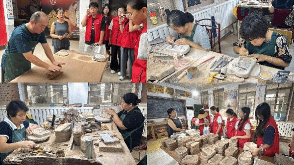 7月24日,团队深入山西绛州澄泥砚研制有限公司生产基地,见证中国四大名砚之一的淬炼历程。从汾河淤泥的千淘万漉,到烈火煅烧的七十二变,队员们通过直播镜头向观众全景呈现一年成砚的非遗奇迹。镜头下,老师傅过滤河泥的专注眼神、雕刻师刀尖游走的精妙技艺引发网友热烈反响,弹幕中传统手艺太震撼”“这才是文化自信的留言持续刷屏。在非遗传承人蔺涛先生的指导下,员们不仅参与砚台坯体创作,更获赠珍贵文献《晋在砚中》,为后续文化传播积累珍贵素材。