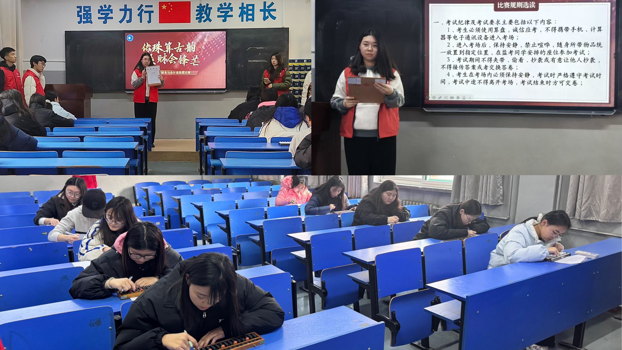 本次比赛王慧敏、郝育莉两位辅导员担任监考老师。监考过程中,两位老师严格遵循比赛规则,认真履行监考职责,细致核对选手身份、分发试卷、把控时间,全程秉持公平、公正、公开的原则,为比赛的顺利进行保驾护航。赛后,获奖选手纷纷表示,此次比赛不仅是一次技能的比拼,更是一次自我提升的机会,今后将继续加强珠算技能练习,传承发扬这一传统技艺。