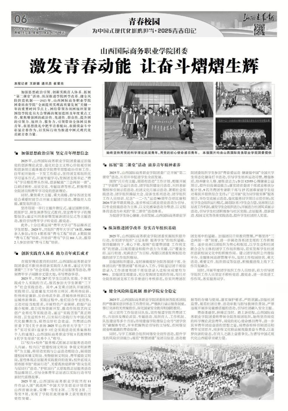 编者按:元月20日,《山西青年报》6版刊发2025青春印记,报道了我院年度...