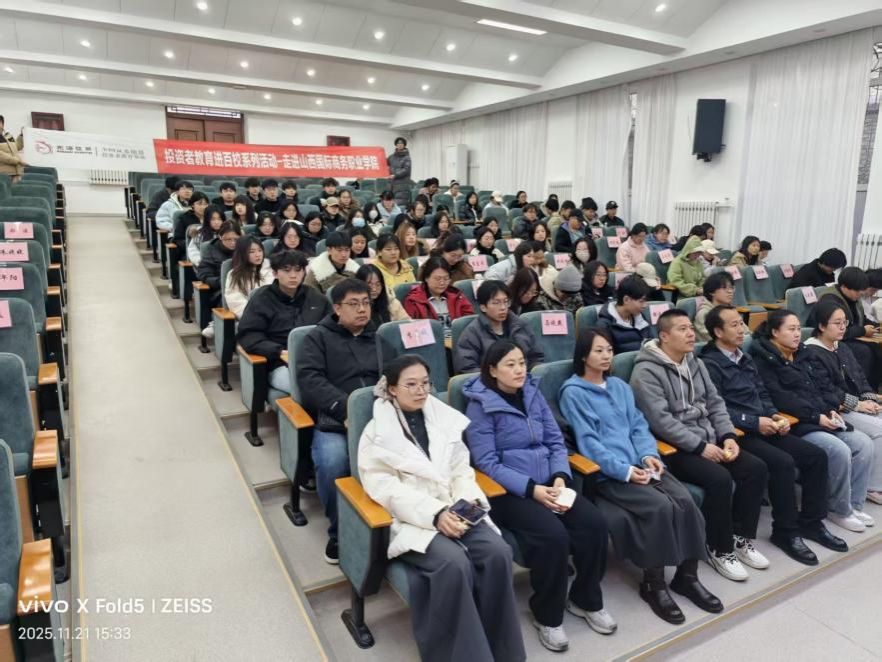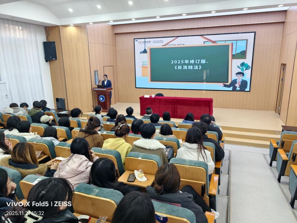 为进一步提升师生预防金融风险安全意识,强化电信诈骗辨识,普及反洗钱法律法规知识,共同筑牢校园安全风险“防火墙”,学院于2025年11月21日下午在知新报告厅组织开展“反洗钱知识进校园”专题讲座。本次活动特邀东海证券山西分公司资深讲师王乙云担任主讲,学院150余名学生代表现场参与。