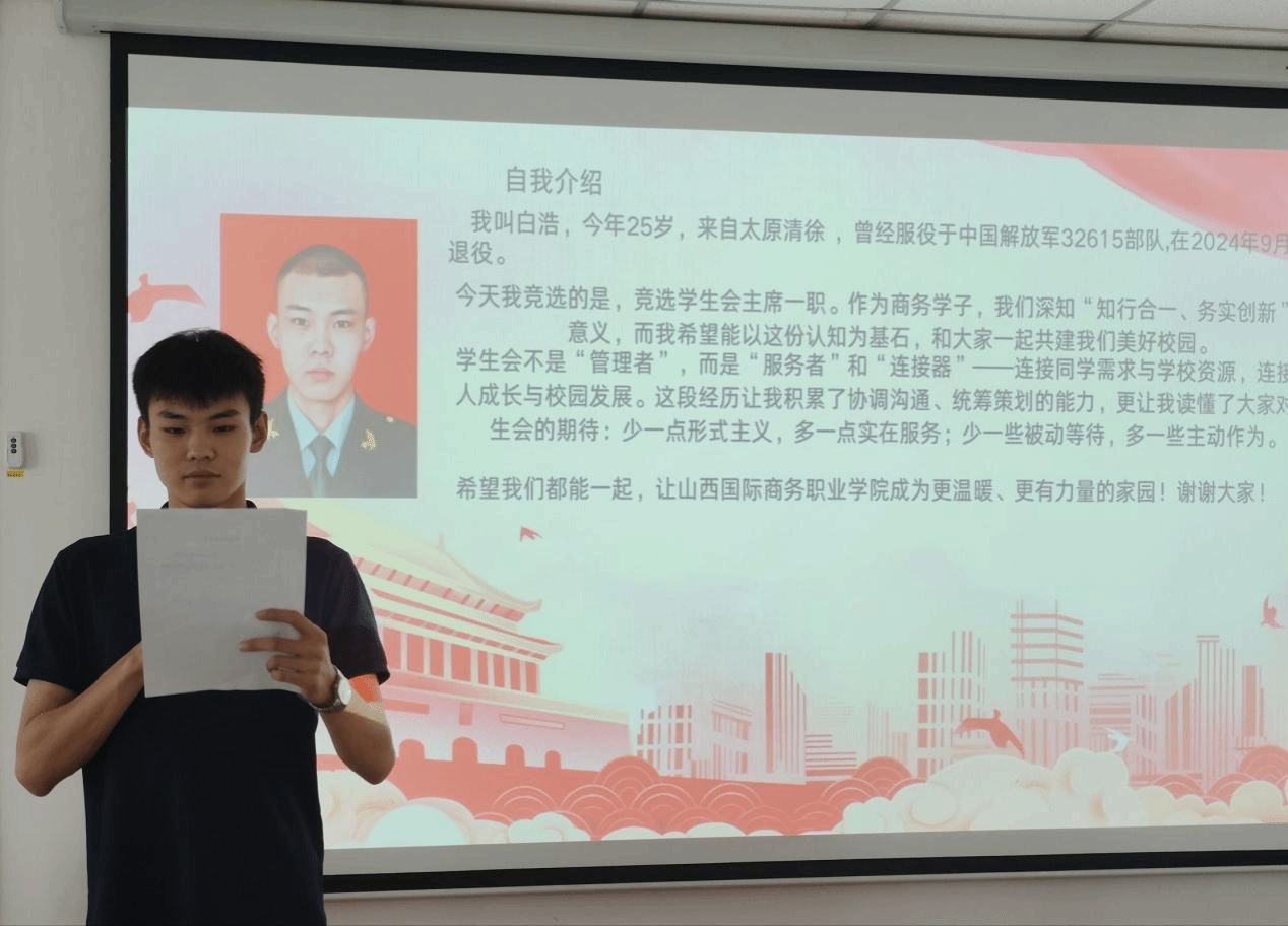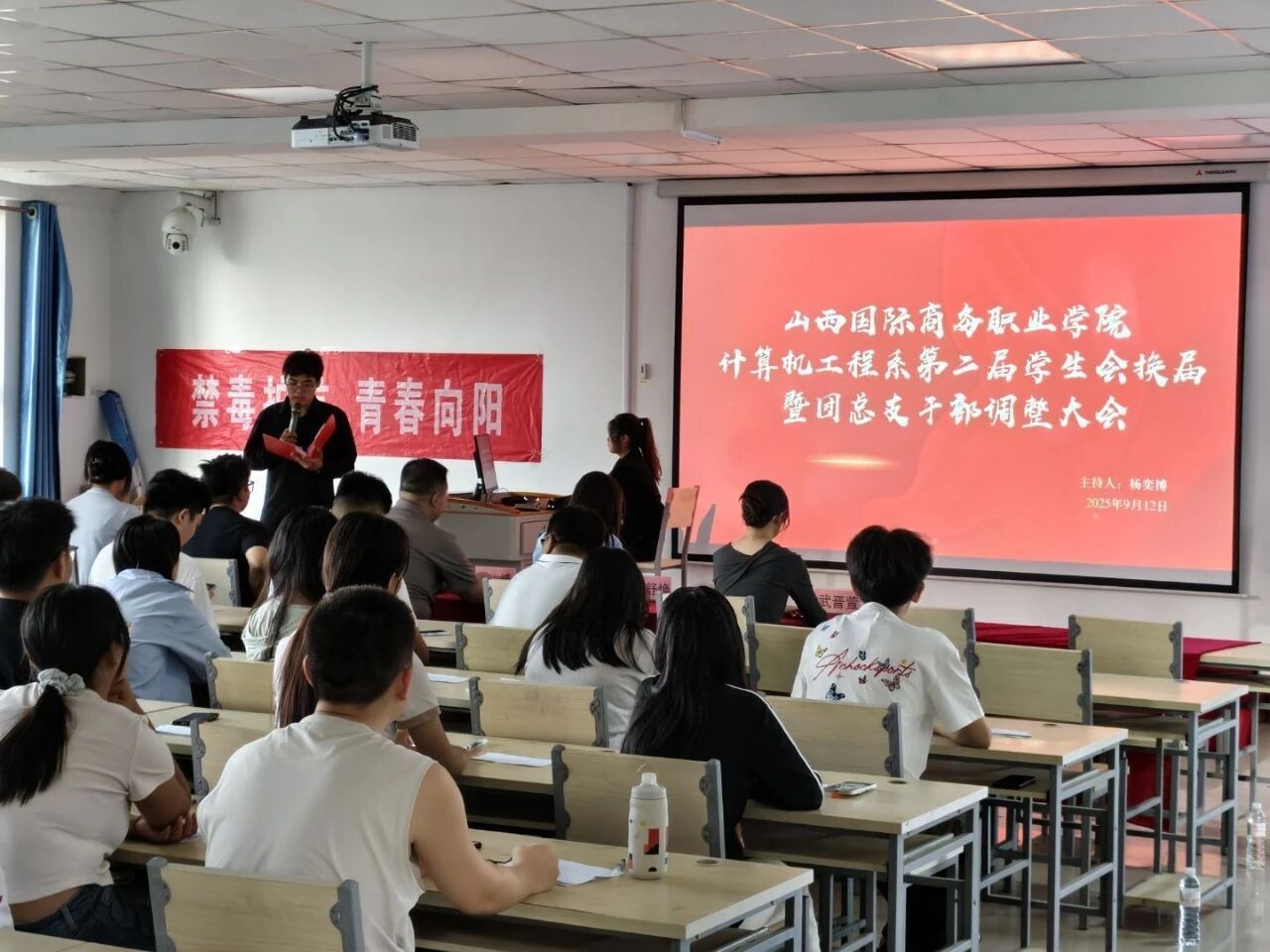9月12日,山西国际商务职业学院计算机工程系第二届学生会换届暨团总支骨干调整大会于罗城校区多功能会议厅正式启幕。系团总支书记成诚和辅导员于舒焕、武晋萱列席会议,第一届团学组织骨干、各班团代表及新一届候选人共同见证此次仪式。大会由第一届学生会副主席杨奕博主持。