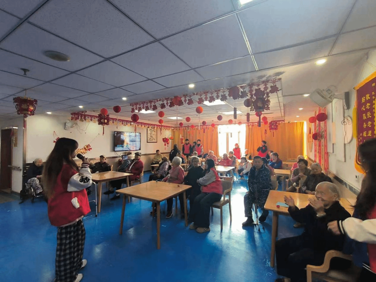 活动伊始,志愿者们与养老院工作人员简单对接后,迅速投入服务。有主动坐到老人身边,握着老人的手拉家常的志愿者,他们耐心倾听他们讲述过往岁月的故事,细致询问老人饮食起居与身体状况,用亲切的话语驱散老人的孤单。还有擅长文艺的志愿者,在养老院活动大厅搭起“临时小舞台”,演唱经典红歌《东方红》《没有共产党就没有新中国》,熟悉的旋律带动老人们集体合唱,现场笑声、掌声此起彼伏,暖意融融。