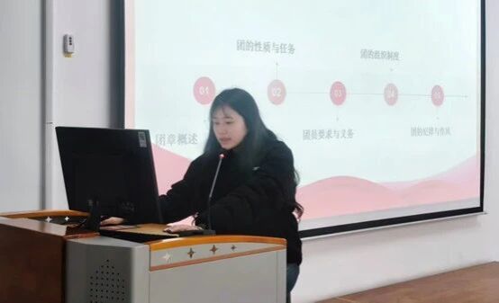 11月25日中午12:30,团总支副书记段云霄主讲“我们的青春我们的团——团章”专题团课。课程系统解读团章整体框架与核心要义,明确共青团的群团组织属性与为党育人、为国育才的根本任务,详细阐释了团员的年龄、思想、行动等基本要求,以及遵守团章、执行决议、维护团结等具体义务,着重强调了团的纪律规范的重要性。互动问答环节中,“团的根本组织原则是什么?”等核心问题引发学员踊跃作答,现场气氛热烈,有效巩固了学习成果,增强了学员对团组织的认同感与归属感。