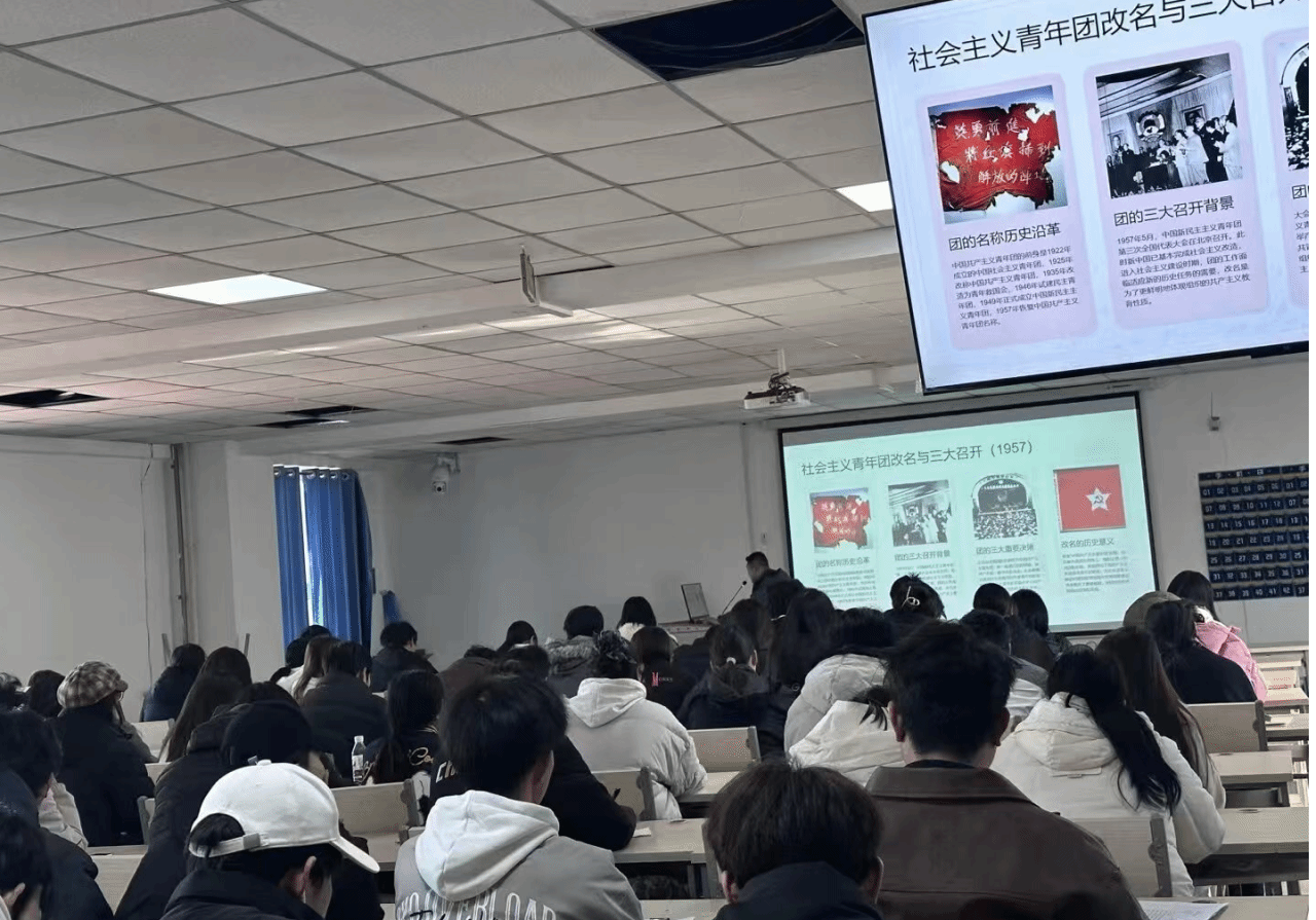 11月21日中午12:30,团总支书记成诚以“我们的青春我们的团”为主题开启系列团课首讲。课程围绕共青团的创立与成长核心,梳理了从1922年团一大召开、早期旅欧支部建立,到1949年新民主主义青年团一大召开、1957年社会主义青年团改组的制度演进逻辑。通过土地革命时期的青年动员、改革开放时期的青年创新实践等具体案例,清晰勾勒出共青团“始终紧跟党的步伐、服务青年成长”的发展脉络,深刻诠释了“党旗所指就是团旗所向”的内涵,让学员们明确了共青团作为党的助手和后备军的使命担当。