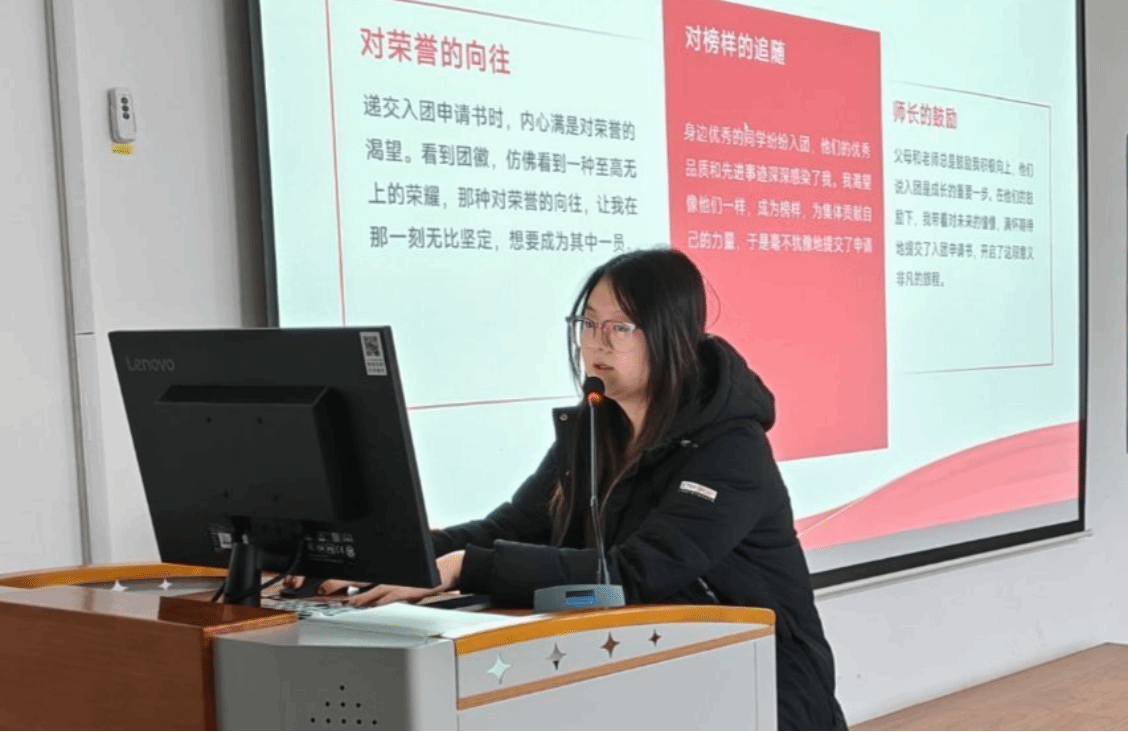 12月2日晚7:30,赵明宇主讲“青年你为何入团?”的主题团课。全场肃立齐唱《中国共产主义青年团团歌》,激昂的旋律凝聚起奋进的力量。主讲人以“初心”为切入点,引导学员深刻认识到入团是信仰的选择、责任的践行,而非对荣誉的追逐。课程围绕团员责任与个人价值实现展开,强调新时代共青团员要在学习上勤学善思、生活中严于律己、集体中勇挑重担,将个人理想融入强国建设、民族复兴大局,让青春在奉献与奋斗中绽放光彩。