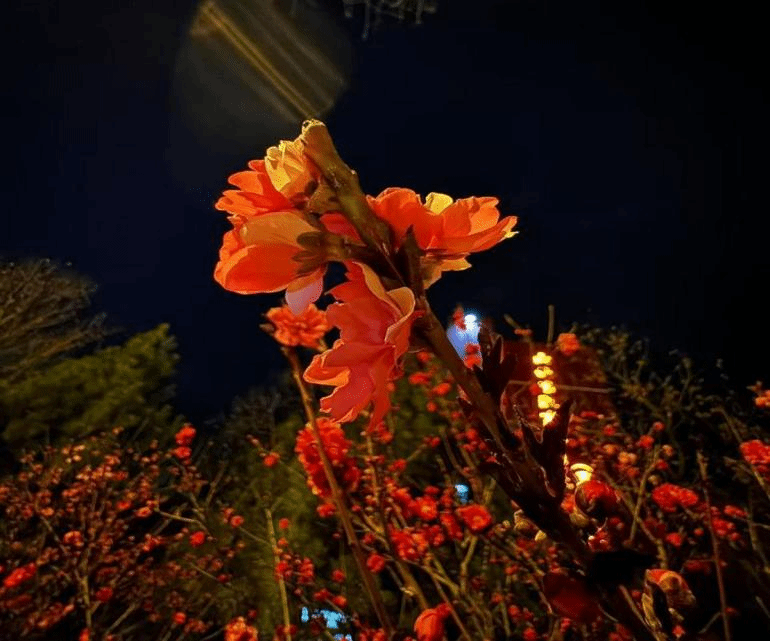 摄影社团超会“捕捉氛围感”!像这张夜景花图,把夜色里的花拍出了暖调温柔的感觉,既有植物的鲜活,又有夜晚的朦胧质感~