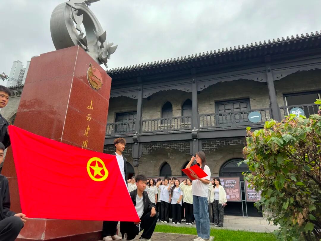 在庄严肃穆的山西建团纪念碑前,一面鲜艳的共青团团旗迎风招展。同学们整齐列队,团委组织部路颖茜同学手持红色誓词读本,带领大家郑重宣誓。宣誓声铿锵有力,回荡在旧址上空,彰显着我院青年对革命精神的坚定传承和对国家、人民的庄严承诺。