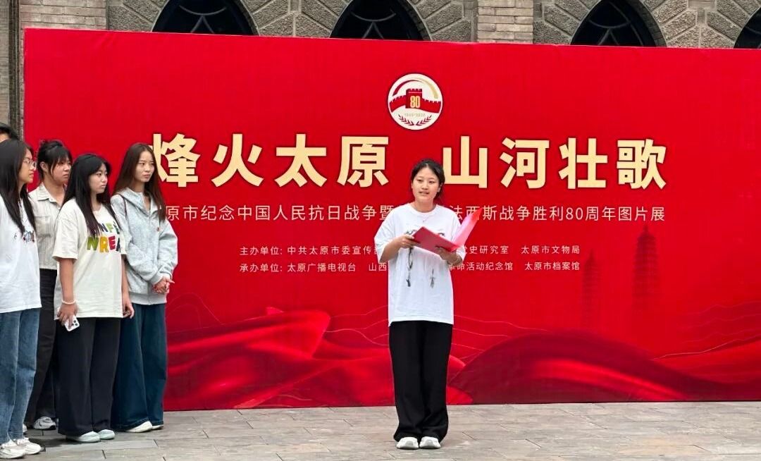 9月16日下午15:00,院团委组织团学组织学生骨干赴山西国民师范旧址革命活动纪念馆,观看“烽火太原 山河壮歌”太原市纪念中国人民抗日战争暨世界反法西斯战争胜利80周年图片展。团委副书记(主持工作)崔星亮、团委干事李婧、商务系团总支书记李思桐,与本届院学生会常任代表、团委组成部门各部长、团委下设各职能机构负责人、系级团学组织骨干等共同观展。