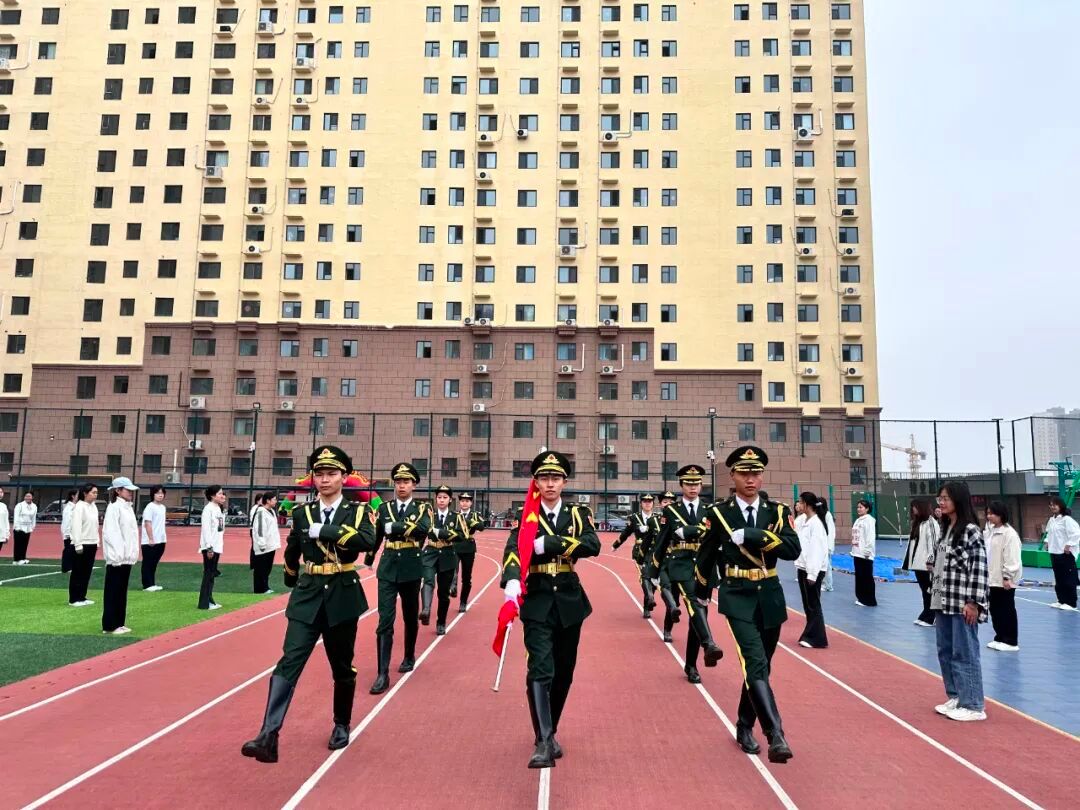 十时整,随着一声号令,由80余名共青团员组成的护旗方队正步散开,国旗护卫队步伐铿锵,护送国旗走向升旗台。激昂的国歌奏响,五星红旗冉冉升起,全体师生庄严肃立,行注目礼,目光紧紧追随那一抹鲜艳的红色。这一刻,炽热的爱国情怀在每个人心中澎湃激荡,凝聚成守护家国、砥砺奋进的坚定信念。