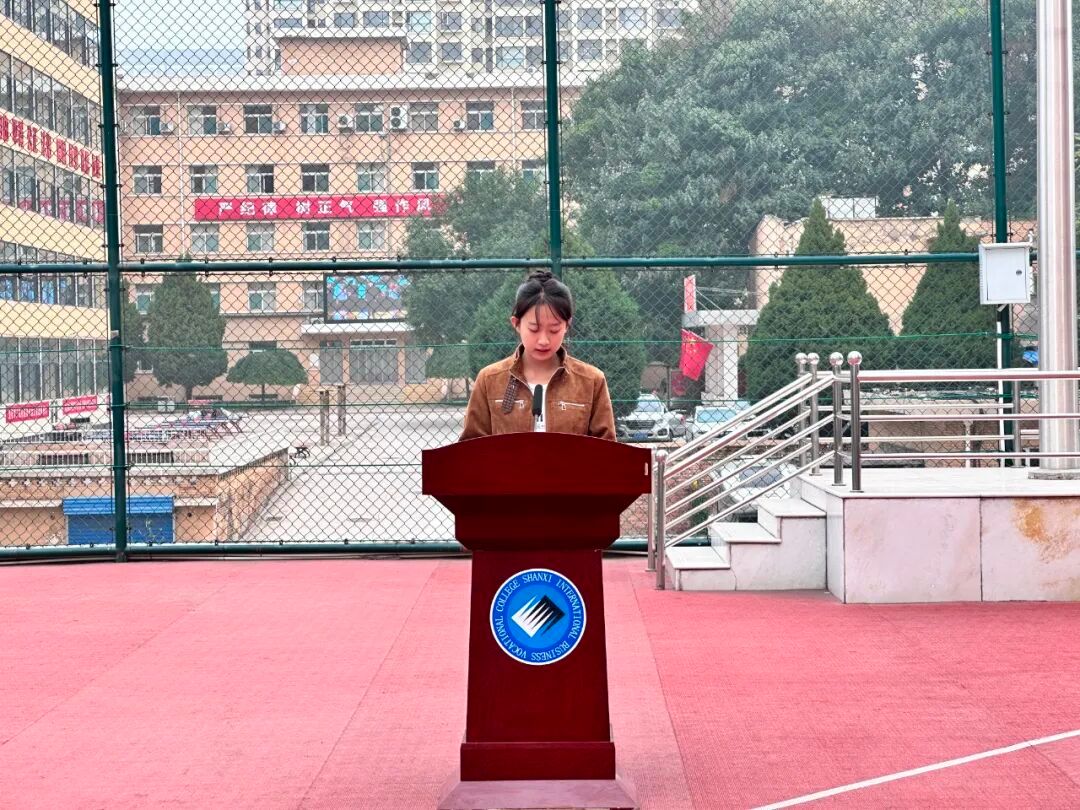 商务系学生代表林珂讲到:“爱国不是一句口号,而是贯穿在学习生活中的点点滴滴;青年的责任,不是遥不可及的使命,而是做好眼前每一件该做的事。我们不需要去虚构遥不可及的场景,只需要把当下的每一步走踏实,认真上好每一堂课,积极参与每一次有意义的活动,这些都是在以实际行动诠释爱国,都是在以青春之责守护国旗的荣光。”