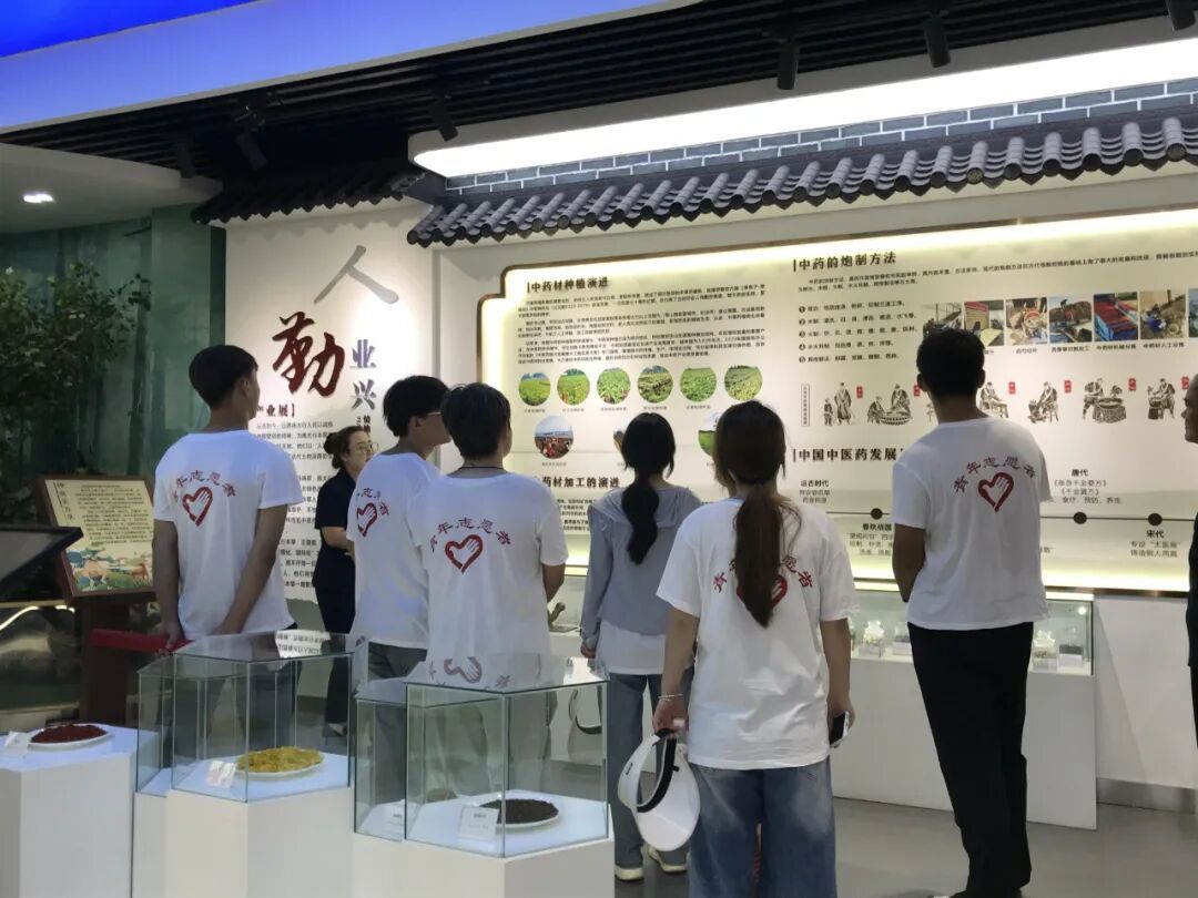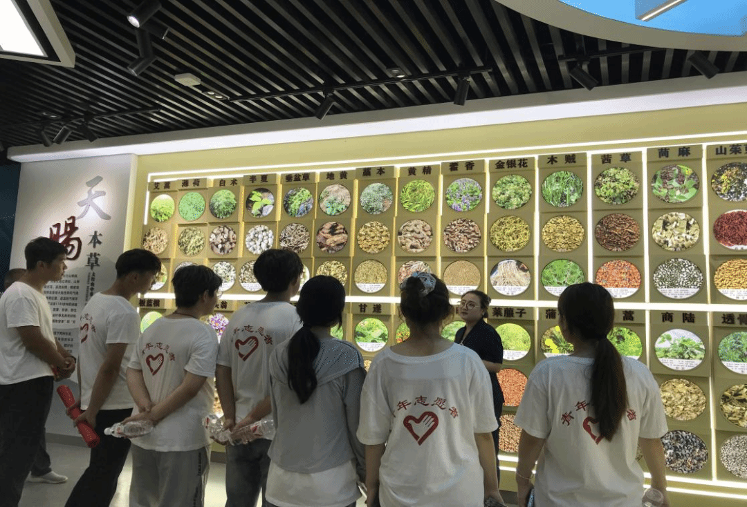 深入田间劳动的同时,团队成员走进本草展览馆学习理论。本草展览馆里的千年智慧更让队员们惊叹,栩栩如生的药材标本,“神农尝百草”传说,让黄芩、远志、艾蒿等药材不再是枯燥的名词,而是化作夏至时节“以草养生”的鲜活注脚。
