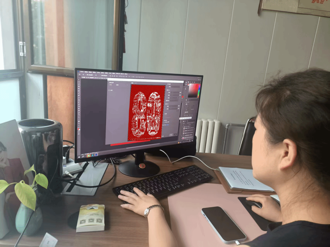 得知吕俊因工作繁忙缺乏创作时间,队员们发挥计算机专业优势,用AI技术构思反法西斯主题创意,通过Photoshop绘制剪纸底稿。“这设计既有历史厚重感,又有现代审美!”吕俊对AI生成的底稿赞不绝口,双方约定9月前完成实体作品,为胜利纪念日献礼。