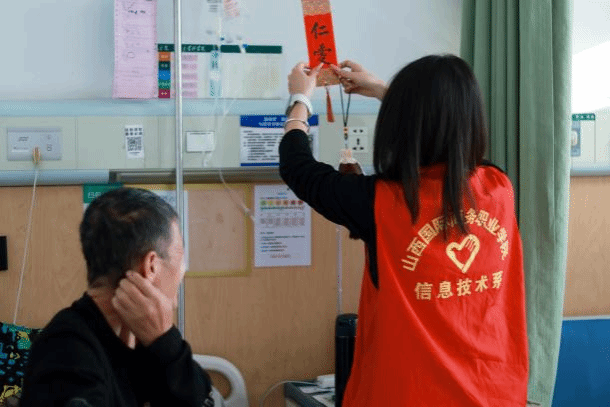 岁岁重阳,今又重阳。为深入弘扬中华优秀传统文化与敬老爱老美德,引导青年学生主动承担社会责任、践行青春使命,信息技术系于重阳节当天组织开展“重阳送暖,香囊传爱”志愿服务活动。50余名心怀热忱的青年学生,带着准备好的茱萸香囊、贺卡、康乃馨、五红汤,走进山西白求恩医院肿瘤中心,为抗癌老人们送上节日的问候与最纯粹的关怀,用青春力量驱散病痛阴霾,以实际行动诠释新时代青年的责任与担当。