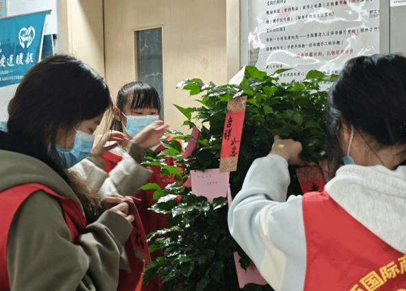 重阳节当天,青年学生们满怀热忱来到活动现场。一进门,大家便主动上前与老人们打招呼、拉家常,关切地询问他们的身体状况与生活起居。“奶奶,这是送您的茱萸香囊,能驱邪避害、迎祥纳福,祝您平安快乐!”“爷爷,这张贺卡上是我们的祝福,愿您天天开心、事事如愿!”学子们将饱含心意的茱萸香囊挂在高处,把温热的五红汤、写满温馨祝福的贺卡递到老人手中,娇艳的康乃馨映衬着老人们欣慰的笑容,现场氛围温馨而热烈。一位抗癌多年的老人动情地在贺卡背后写下:大学生青春之光永远照亮别人。此外,部分学生还为老人赠送帽子,陪同老人做康复训练。