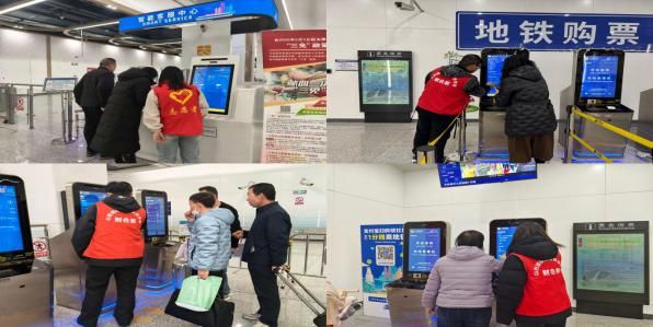在售票区,志愿者们耐心细致地帮助乘客购买车票。面对一些对自动售票机操作不熟悉的乘客,尤其是老年人和外地游客,志愿者们主动上前,一边轻声询问目的地,一边熟练地操作机器,帮助他们完成购票流程。遇到乘客对票价、换乘等问题有疑问时,志愿者们也总是微笑着解答,确保乘客清楚了解相关信息。