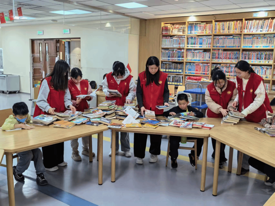 根据图书馆不同区域的服务需求,志愿者们被精准划分为三个小组,各司其职、协同作战,投入忙碌的志愿工作中。亲子馆内,6名志愿者全程协助馆方开展亲子绘本共读、手工创作等互动活动。他们耐心引导亲子家庭有序借阅图书,及时解答借阅相关咨询,同时细心整理阅读区图书,保障区域环境整洁有序,为亲子阅读时光增添了更多舒心与安心。