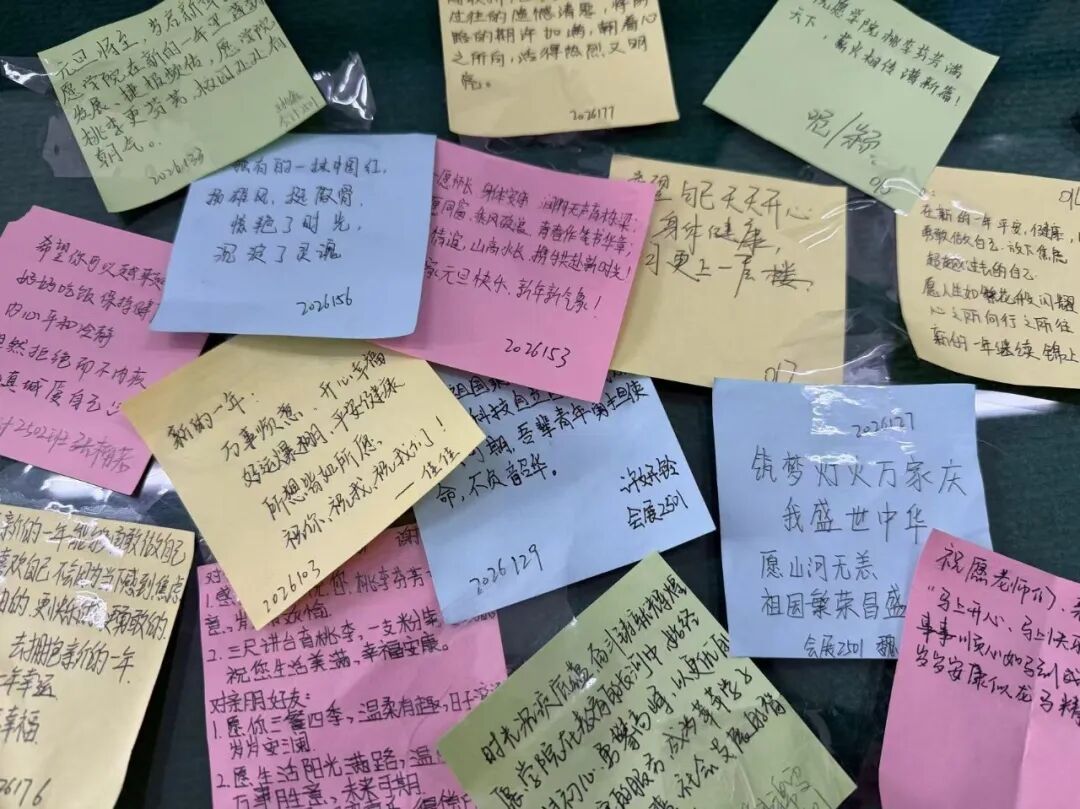 晚会中,现场“新年心愿”互动环节把握晚会节奏调节现场气氛——现场随机抽取20份心愿清单,被抽到的幸运儿可领取马年吉祥物。新年心愿便利贴有着特殊的含义,蓝色承载着同学们对祖国繁荣昌盛的家国梦,绿色凝聚着对学院发展越来越好的真挚祝福,粉色满含对师长教诲、亲朋好友关怀的感恩与祝愿,黄色则记录着每个人对自己新一年的目标与期许。同学们的质朴期许,让暖意漫遍全场。