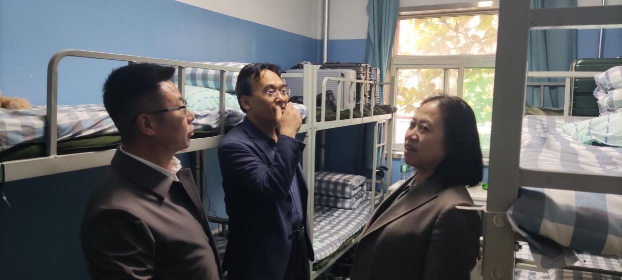 2025年10月11日,学院党委副书记、院长付剑,党委委员、副院长李焕忠,学生工作部部长梁涛,文化与旅游系党总支书记王婷一行前往学院经贸校区专程看望2025级新生,大家深入军训现场、学生宿舍、食堂一线进行实地走访,通过耐心查看、细致询问,全面了解新生校园生活适应情况,安排后勤工作人员做好新生各项保障。