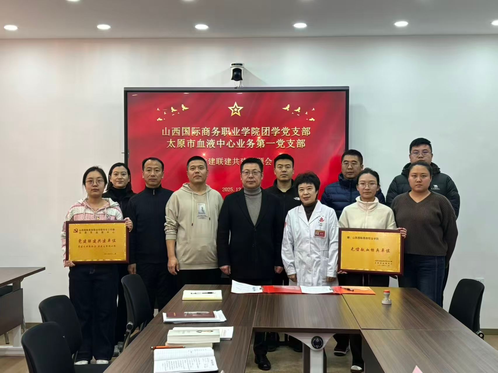 为进一步弘扬奉献精神,增强我院大学生的责任感和使命感,2025年12月3日,由学生工作部与太原市血液中心联合主办的大学生义务献血活动在我院如期开展,我院师生积极参与,纷纷以实际行动奉献爱心、传递正能量,以青春之名共赴“热血之约”。此外团学党支部与太原市血液中心业务第一党支部达成支部党建共建联建合作协议,深度合作,共谋发展,学院副院长李焕忠、太原市血液中心吴梅主任、学生工作部部长梁涛参加本次活动。