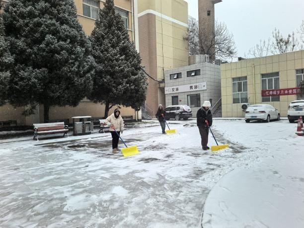 伴着飘雪,师生们有序领取铁锹、扫帚等工具,按照预定分组奔赴校园主干道、教学楼出入口、食堂周边等重点区域开展扫雪工作。尽管天气寒冷,积雪厚实,但同学们热情高涨、干劲十足:有的挥舞铁锹破冰除雪,有的手持扫帚清扫残雪,有的默契配合运送雪堆,现场呈现出一派热火朝天的劳动景象。老师们主动靠前,和学生们一同忙碌——一边示范扫雪的巧劲,一边提醒着安全细节,以实际行动做好了带头引领。