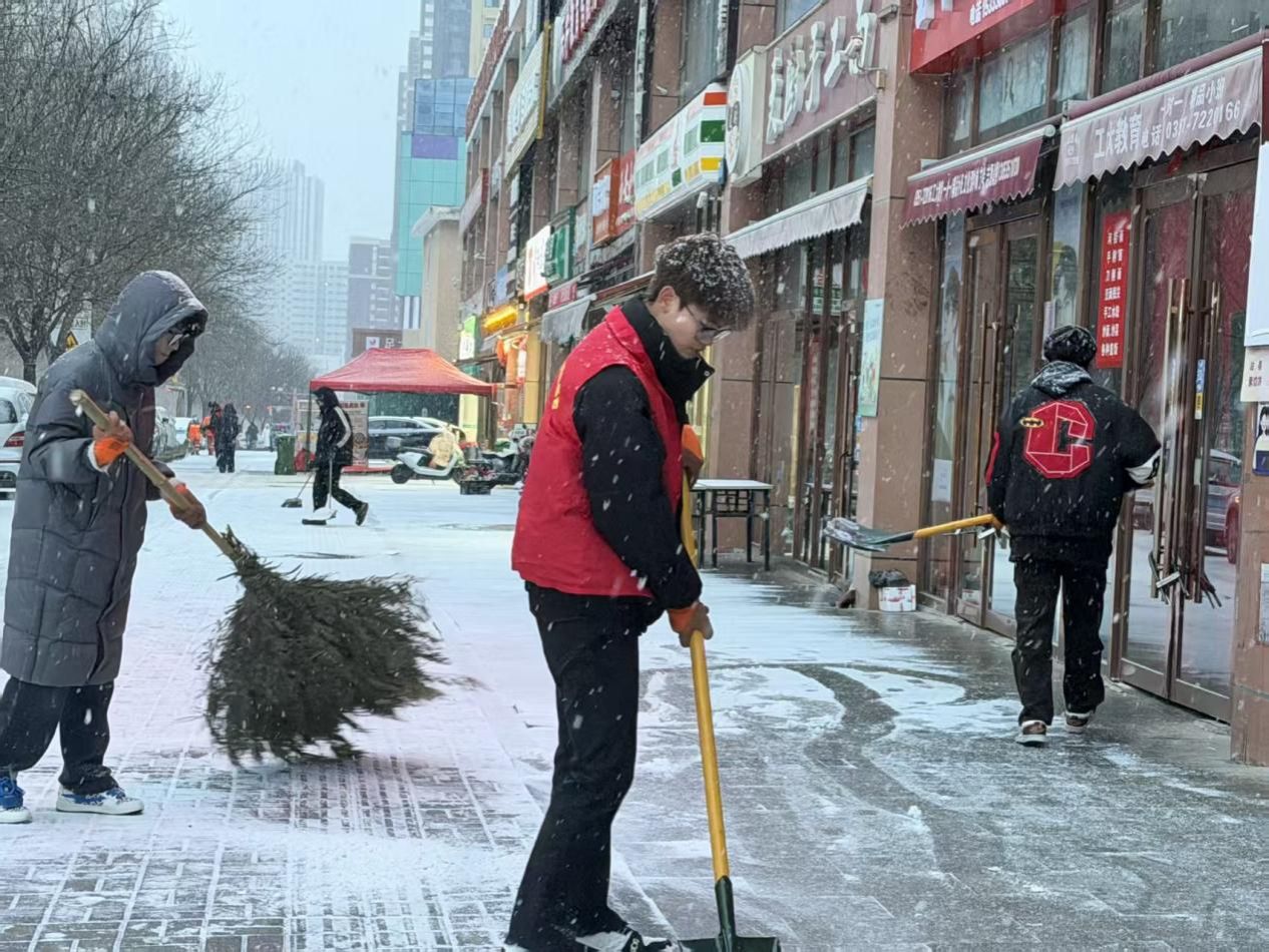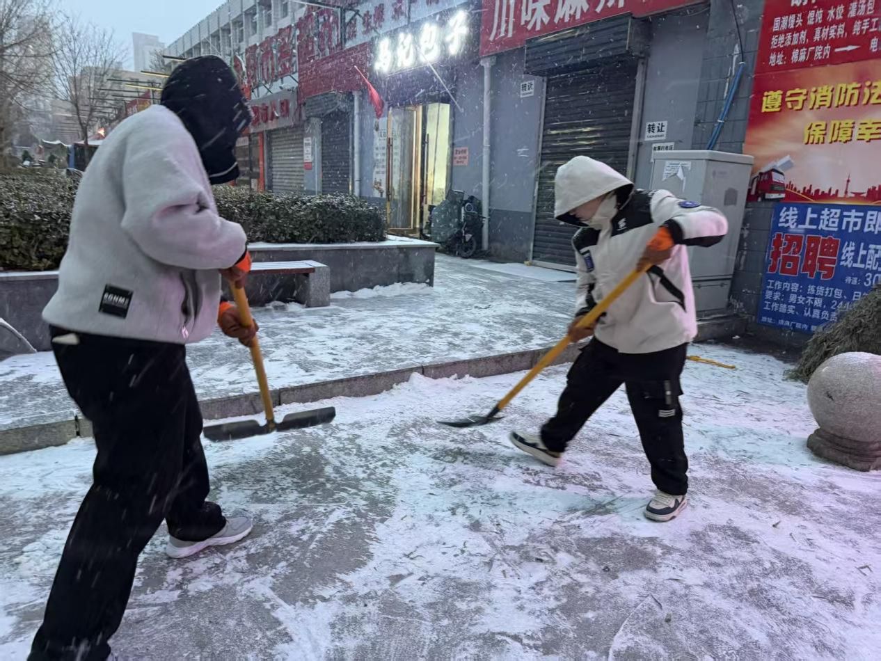 冬日降雪易致路面湿滑,给居民日常出行带来诸多不便。为保障社区居民通行安全,传承服务精神,近日,田和社区联合山西国际商务职业学院学生工作部,快速组建铲雪服务队,开展辖区积雪清理专项行动,用实际行动筑牢冬日安全防线。