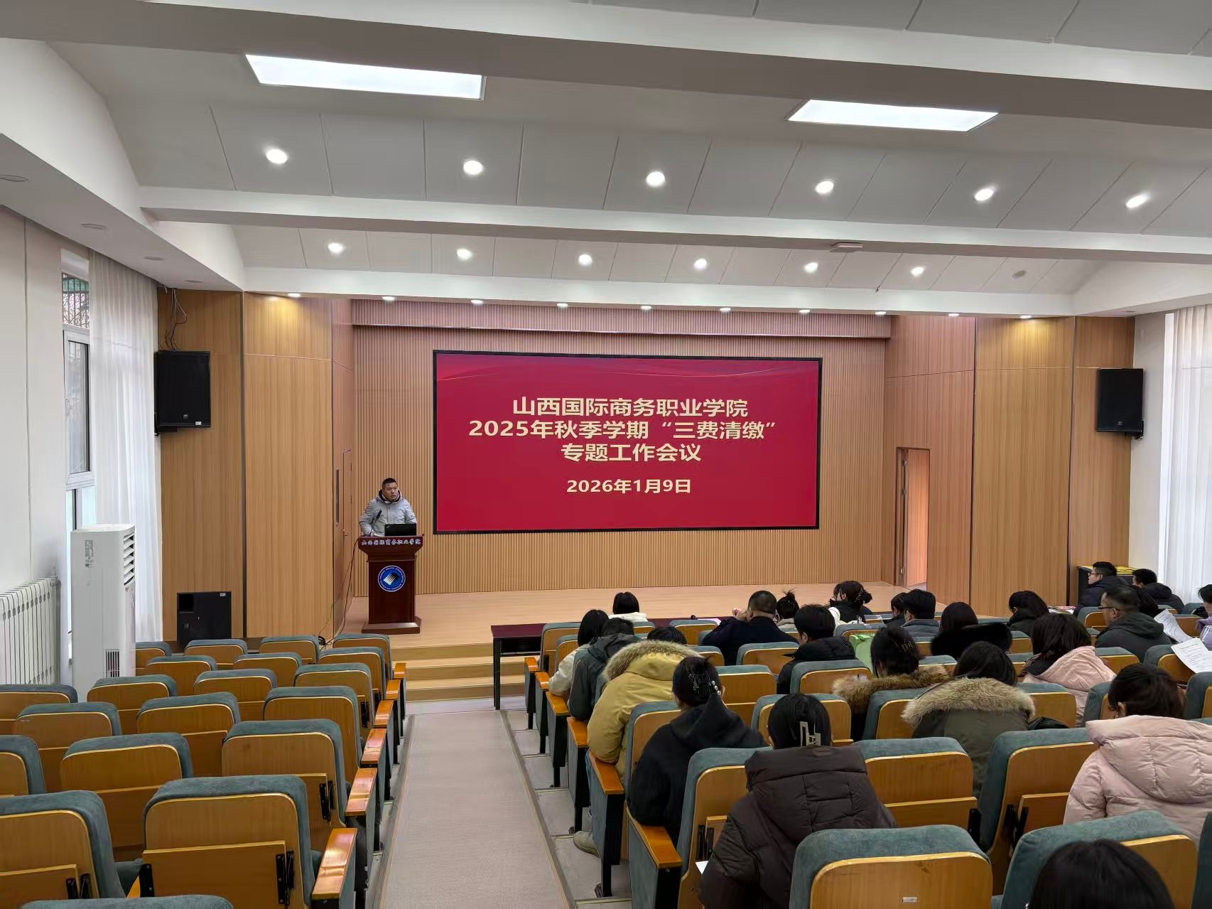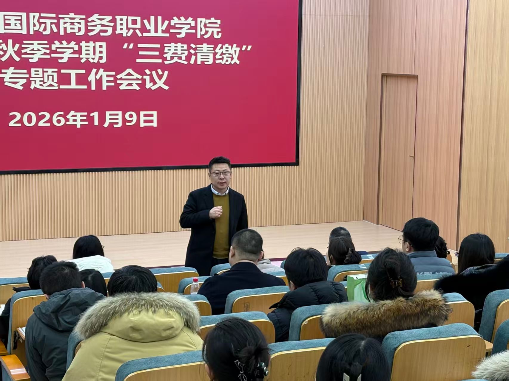 2026年1月9日,学院于第一会议室组织召开了2025年秋季学期“三费清缴”专题工作会议。学院党委委员、副院长李焕忠出席会议,学生工作部部长、规划财务部部长、招生就业与对外合作部部长、各系党总支书记、全体2023级、2024级、2025级辅导员参加了会议。