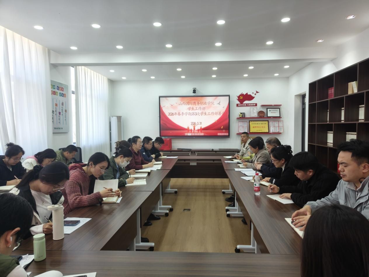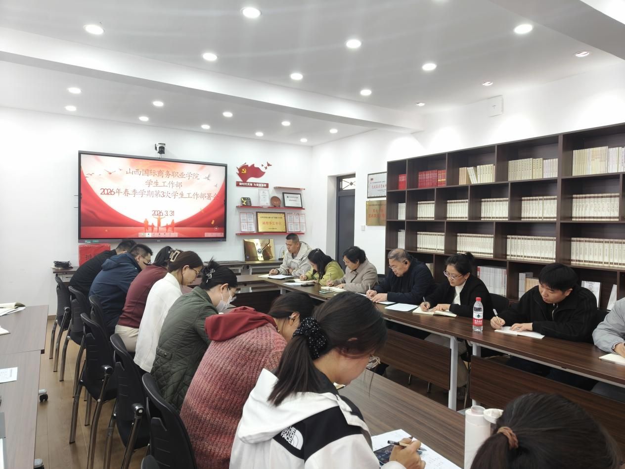 为全面统筹春季学期各项学生管理工作,压实工作责任,明确任务节点,切实保障学生工作高质量提升,2026年3月31日,学生工作部召开春季学期第三次学生工作部署会,专题部署“4·15”全民国家安全教育日宣传活动、学生公寓卫生整治行动、学生问题接诉即办、新学期心理测评与心理剧大赛、辅导员队伍考核、2026年春季学期助学金发放、节假日安全等重点工作,各系党支部书记、全体辅导员及相关学生工作负责人参会。