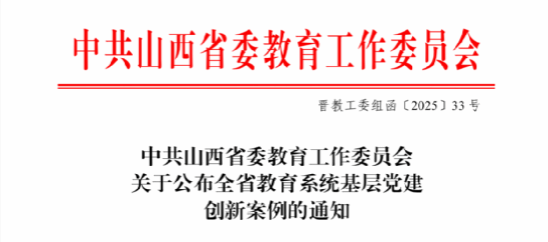 近日,山西省委教育工委公布了全省教育系统基层党建创新案例入选名单(《中共山西省委教育工作委员会关于公布全省教育系统基层党建创新案例的通知》晋教工委组函〔2025〕33号),我院信息技术系学工党支部报送的...