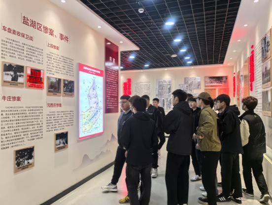走入运城解放纪念馆内,厚重的历史气息扑面而来。师生们仿佛踏入了时光隧道,透过一幅幅珍贵的历史影像、一件件饱经沧桑的实物展品,重回那战火纷飞、波澜壮阔的解放战争岁月。展馆以“三打运城”战役为主线,生动而真实地再现了人民解放军为了解放运城,不惜抛头颅、洒热血,浴血奋战的壮烈场景。尤其是那面庄严肃穆的英烈墙,上面密密麻麻铭刻着4549个名字,每一个名字背后,都是一位为解放运城而英勇牺牲的烈士。同学们纷纷驻足停留,目光中满是敬畏与感慨,他们轻声念着烈士们的名字,似乎在与这些英雄进行一场穿越时空的对话。当走到展柜前,看到那泛黄的战役指挥手稿和质朴的战士遗物时,大家不禁想象着当年战士们在艰苦环境中依然顽强战斗的画面,内心的震撼难以言表。