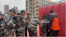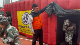 在逃生帐篷演练环节中,工作人员搭建起模拟浓烟环境的逃生帐篷,帐篷内通道狭窄、光线昏暗,还原了火灾现场的复杂环境。教官先讲解了火灾逃生的核心要点:低姿弯腰前行、用湿毛巾捂住口鼻、沿疏散指示标志方向逃生,避免拥挤、踩踏。学生分组依次进入帐篷演练,在教官和工作人员的引导下,克服视线受阻、通道复杂的困难,快速、有序地从帐篷出口撤离。通过沉浸式模拟演练,新生熟练掌握了火灾现场的正确逃生方法,提升了应急反应能力。