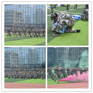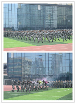 刚劲有力的擒敌拳、军体拳,飒爽利落的刺杀操、匕首操,整齐划一的三声三相,规范标准的内务整理,生动活泼的战术表演,模拟实战的战术方队,尽显同学们的蜕变与成长。