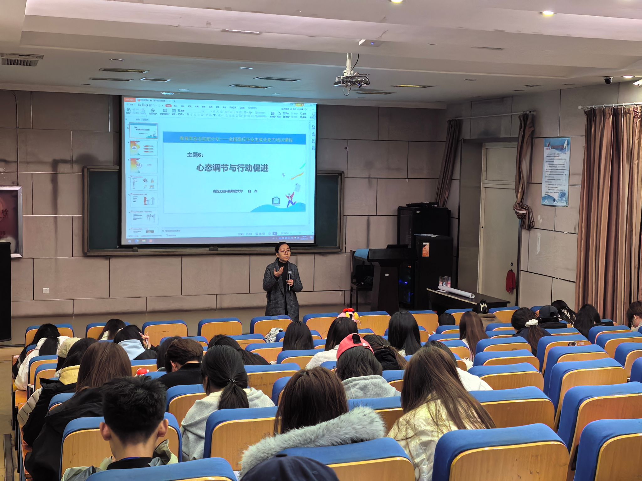 11月9日,白杰老师带来“心态调节与行动促进”课程,通过“压力疏导训练”内容引导学生认识潜意识里的焦虑和不自信等负面情绪、重构正向理念、助力学生用有效的方法疏导积极心态面对求职中的困难。