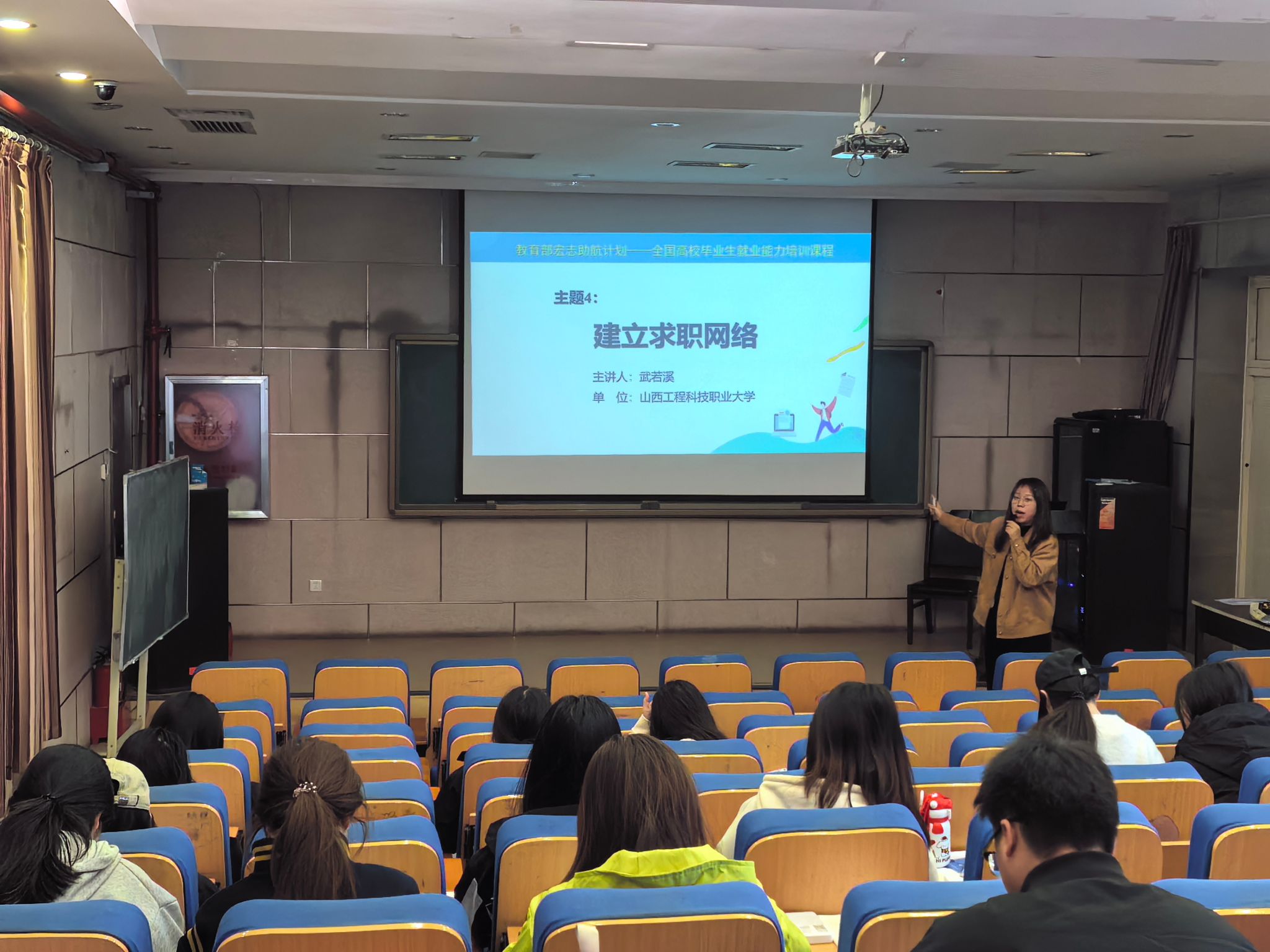 武若溪老师讲解“建立求职网络”,从校内导师资源到校友链接指导学生拓展职场人脉资源、了解就业平台网络、构建多元化求职渠道,实时掌握第一线资讯。强化学生自主获取求职资源的意识和能力。