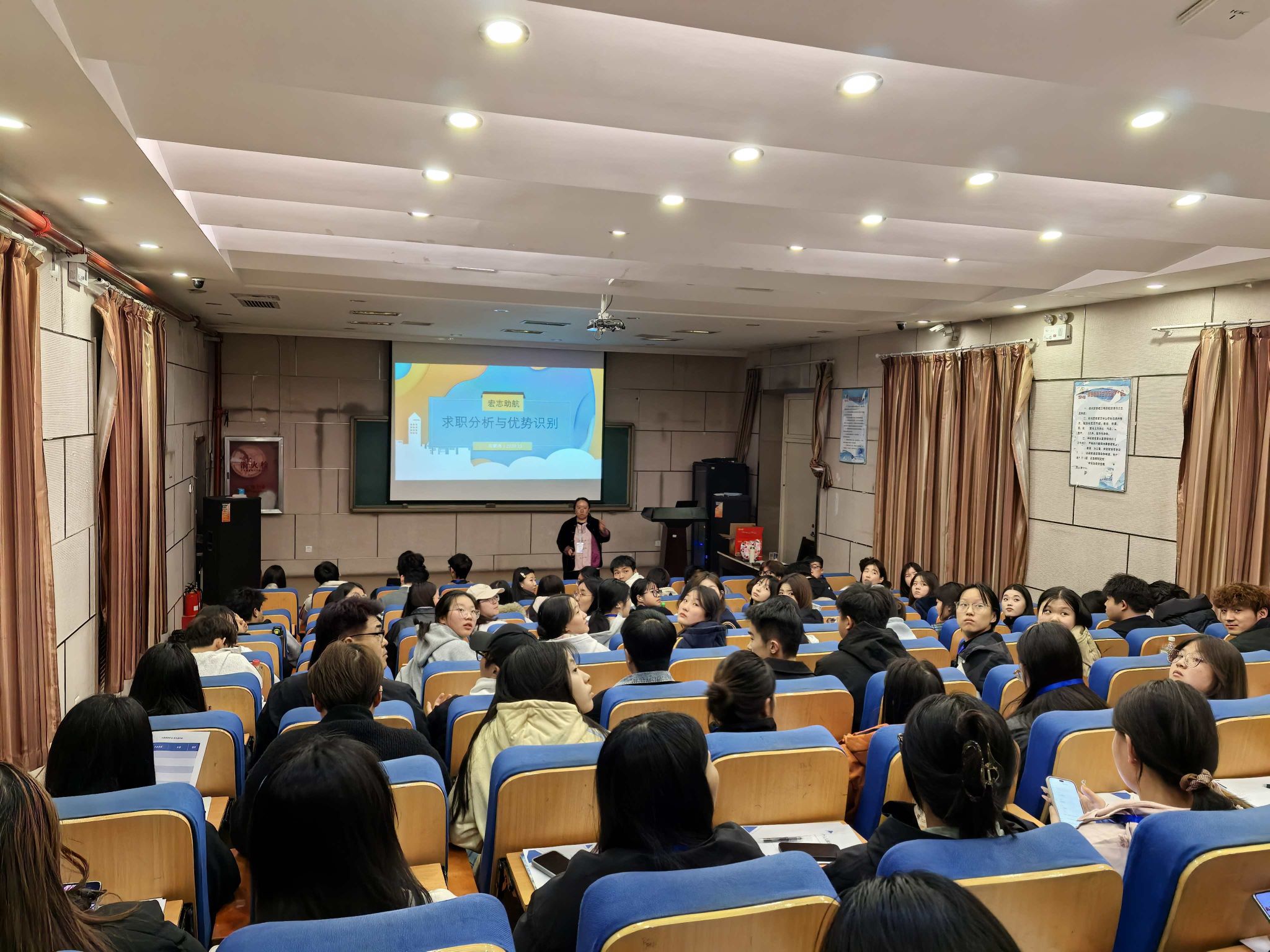 苟春华老师带来“探索求职方向与决策”课程,助力学生科学规划职业方向,同时结合“兴趣、能力、价值”三要素选择适配自己的职业赛道。