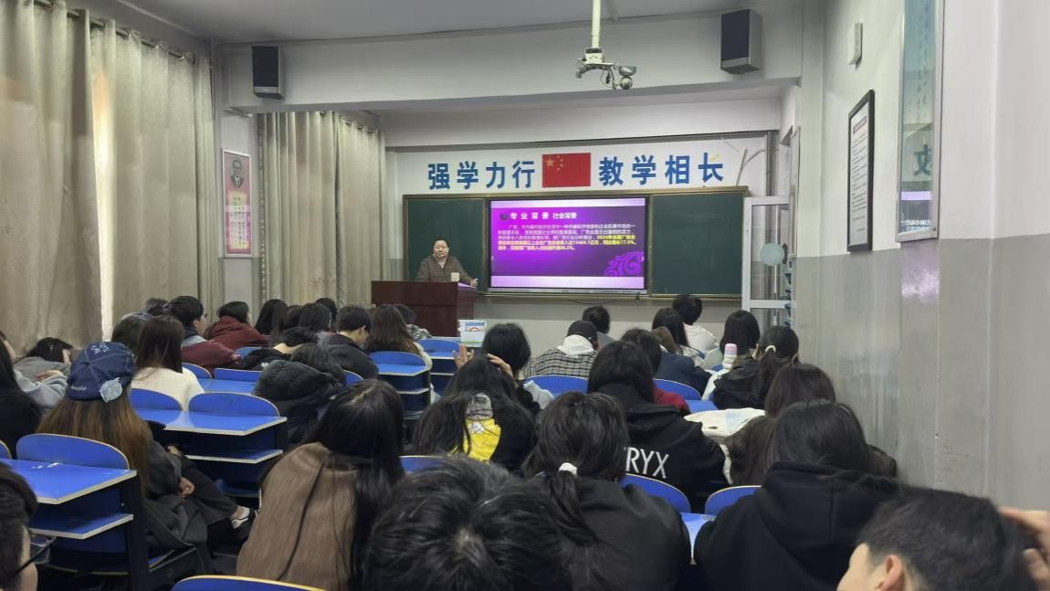 随后,各专业认知教育有序推进。商务英语专业特邀山西简和机械设备有限公司张海英董事长现身说法,她结合多年外贸从业经历,从商务谈判技巧、跨境贸易流程、行业人才需求等角度展开分享,着重强调“语言功底+贸易规则”的双核心能力,并用“让中国货物通过专业能力走向世界”的寄语点燃新生热情。互动环节中,张总针对职业规划、技能提升等问题的细致解答,让商务英语专业新生对就业前景有了更清晰认知。